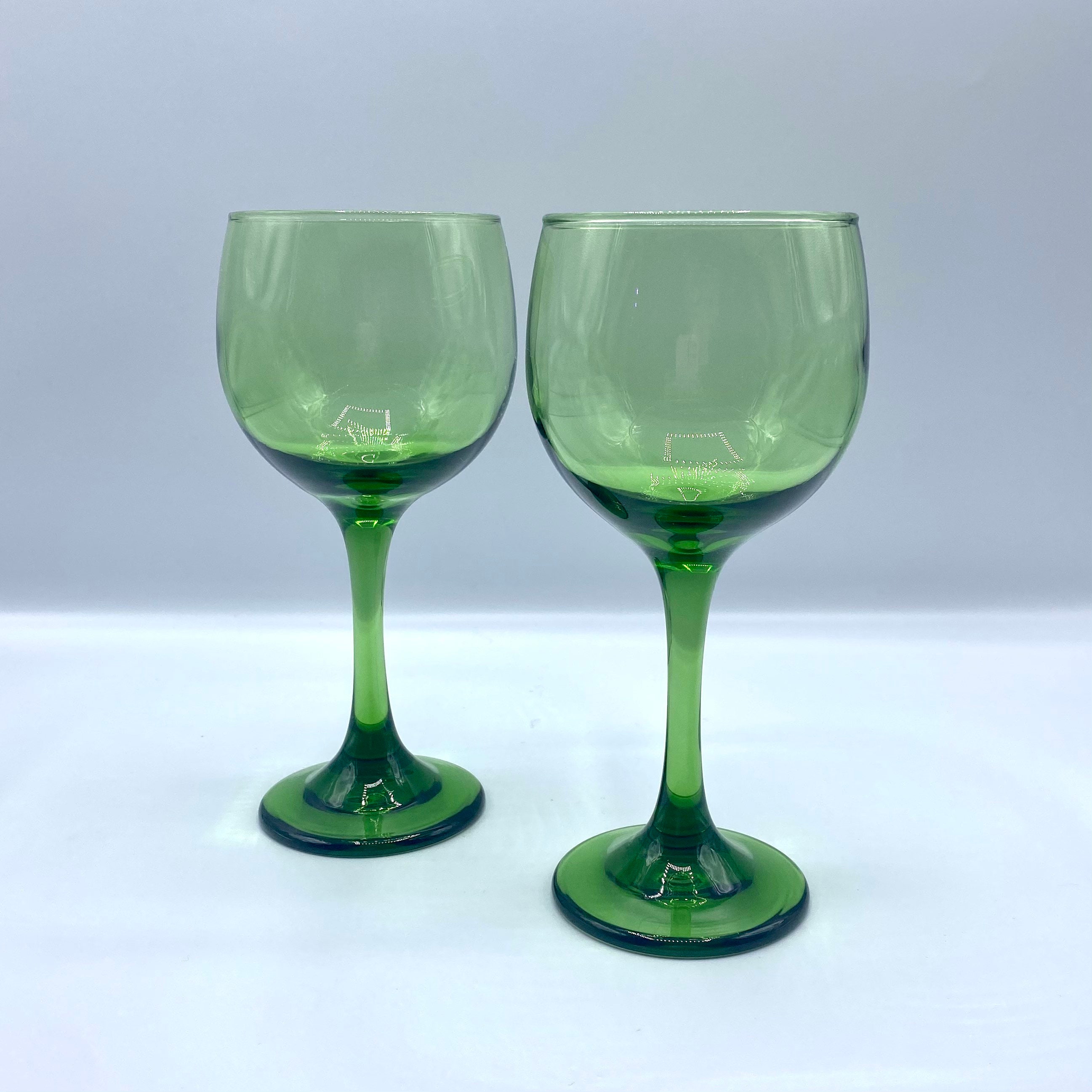 Green Glass Stemware Set Of 2 Libbey Green Wine Glasses Etsy